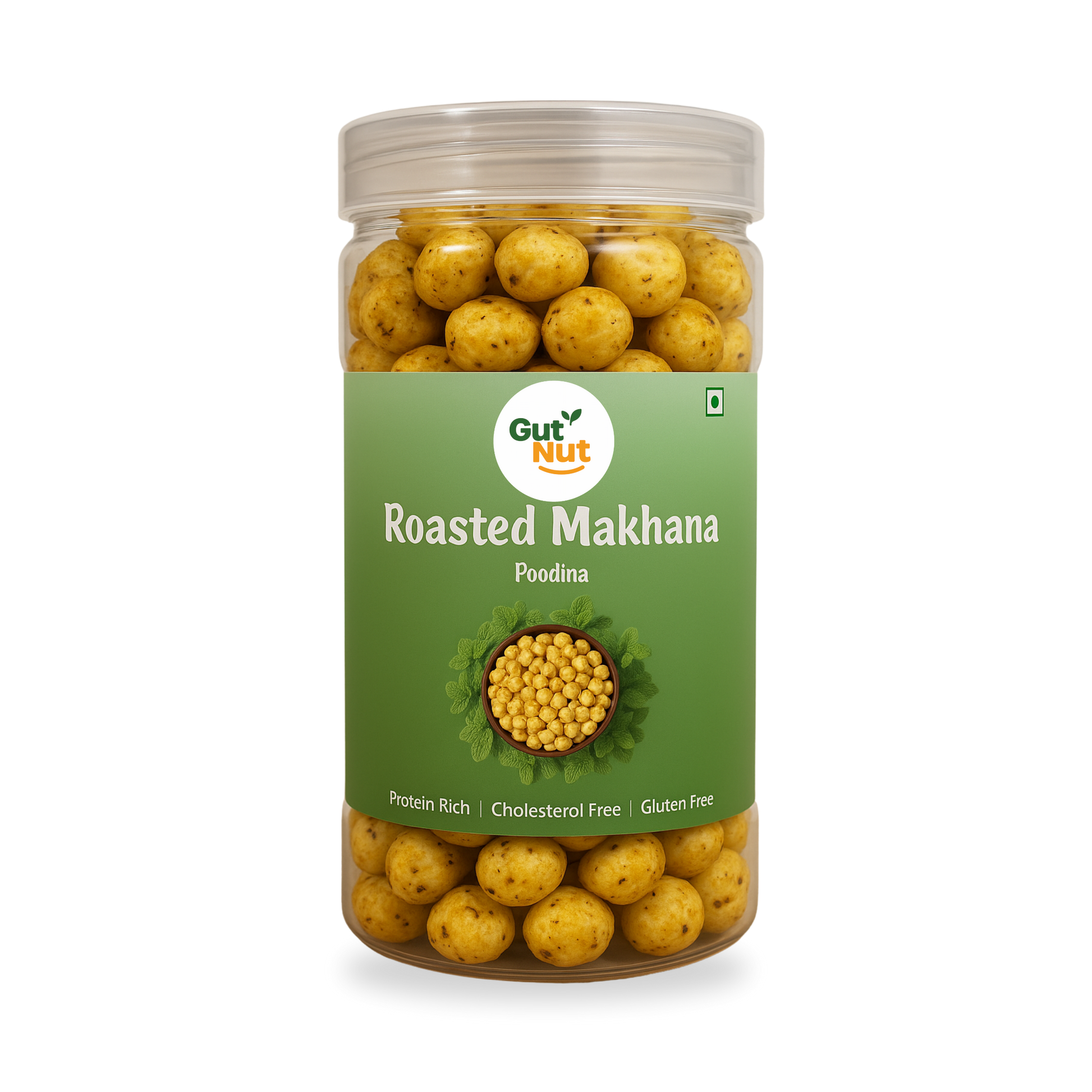 Gutnut Pudina (Mint) flavoured roasted Makhana 90g Jar